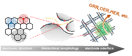 以氧气还原(ORR)、氧气析出(OER)、氢气析出(HER)、为代表的能源电催化是电解水制氢、燃料电池、金属空气电池等下一代清洁高效能源系统的核心技术,也是关键瓶颈。这些反应涉及多步质子耦合的电子转移过程,过电势很大,因而能量效率受限。目前,大量的研究工作集中在催化剂的开发研究,已有众多材料有望取代贵金属催化剂。但由于有气体参与,实际反应只能在气固液三相界面处有效发生。因此研究不仅需要从材料科学角度对催化剂进行设计,也要关注界面化学和反应行为,从不同层次综合优化,方可实现性能的最大幅度提高和在能源器件中的高效应用。