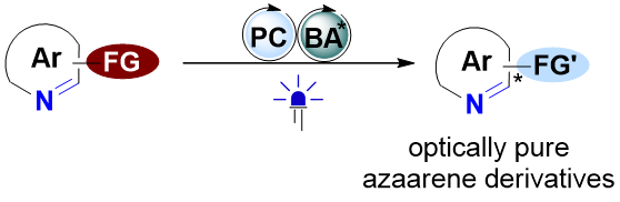 Abundant and structurally diverse nitrogen-containing aromatic heterocycles (azaarenes) are of great importance in many scientific and industrial fields. The development of methods for accessing azaarene derivatives has thus attracted substantial attention from chemists. In particular, directly exploiting the electronic properties of azaarenes to trigger transformations of azaarene-containing substrates has long been appreciated as a powerful tool because it avoids the use of extra activating groups and allows the straightforward functionalization of azaarenes. Here, we report our current works on the syntheses of optically pure azaarene derivatives through cooperative photoredox and chiral Brønsted acid catalysis.1