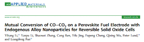 在上述工作的基础上,范梁栋课题组采用外延生长技术在钙钛矿氧化物表面生长NiFe合金用于CO2/CO高效可逆转化。题为《Mutual Conversion of CO–CO2 on a Perovskite Fuel Electrode with Endogenous Alloy Nanoparticles for Reversible Solid Oxide Cells》的研究性论文由西安电子科技大学副教授/深圳大学博士后李一航为第一作者,深圳大学李一航博士后、范梁栋特聘副研究员和芬兰阿尔托大学Peter Lund为共同通讯作者著作。该论文发表于国际期刊ACS Applied Materials & Interfaces(影响因子10.383,中科院大类1区)上。论文发表至今已被引31次。