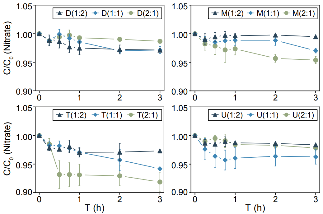 光催化与生物降解紧密耦合技术(Intimately coupling of photocatalysis and biodegradation, ICPB)结合了光催化反应和微生物处理的优点,是一种新型的去除生物难降解污染物的技术,研究表明ICPB对硝酸盐具有较好的还原效果。然而,ICPB在低碳条件下还原硝酸盐的效果尚不明确,其微生物代谢机制及菌群结构功能变化需进一步研究。因此,本研究制备了促进硝酸盐光催化反应的催化剂,驯化了稳定高效的生物膜构建ICPB体系。利用物化表征测试手段和分子生物学方法探究不同影响因子对ICPB去除硝酸盐的效果,揭示低碳条件下系统中光催化与微生物降解的协同作用机理,阐明微生物的菌群结构和功能变化规律,为低碳水体中硝酸盐的还原提供了科学依据和技术支持。