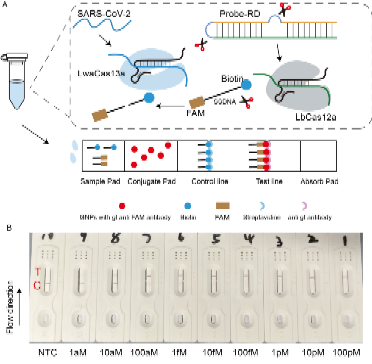 在COVID-19大流行期间,居家检测作为一种快速、便捷且低成本的诊断手段,在公共卫生防控中发挥了重要作用。然而,市售抗原检测试剂盒由于灵敏度不足,易导致假阴性结果;RT-PCR尽管灵敏度高,但需实验室环境支持,不适合家庭使用。刘翼振团队研发了一种结合CRISPR级联系统与侧向流免疫层析分析的新型检测方法,能够实现无扩增条件下的高灵敏度SARS-CoV-2检测,解决了现有检测方法的不足。