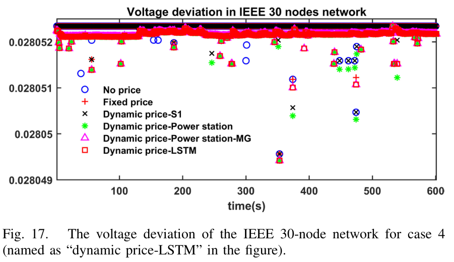 4) In Case 4, an LSTM network is adopted to train the relationship between states (voltage, traffic flow) and the price. The hydrogen price is decided based on the smart LSTM network.