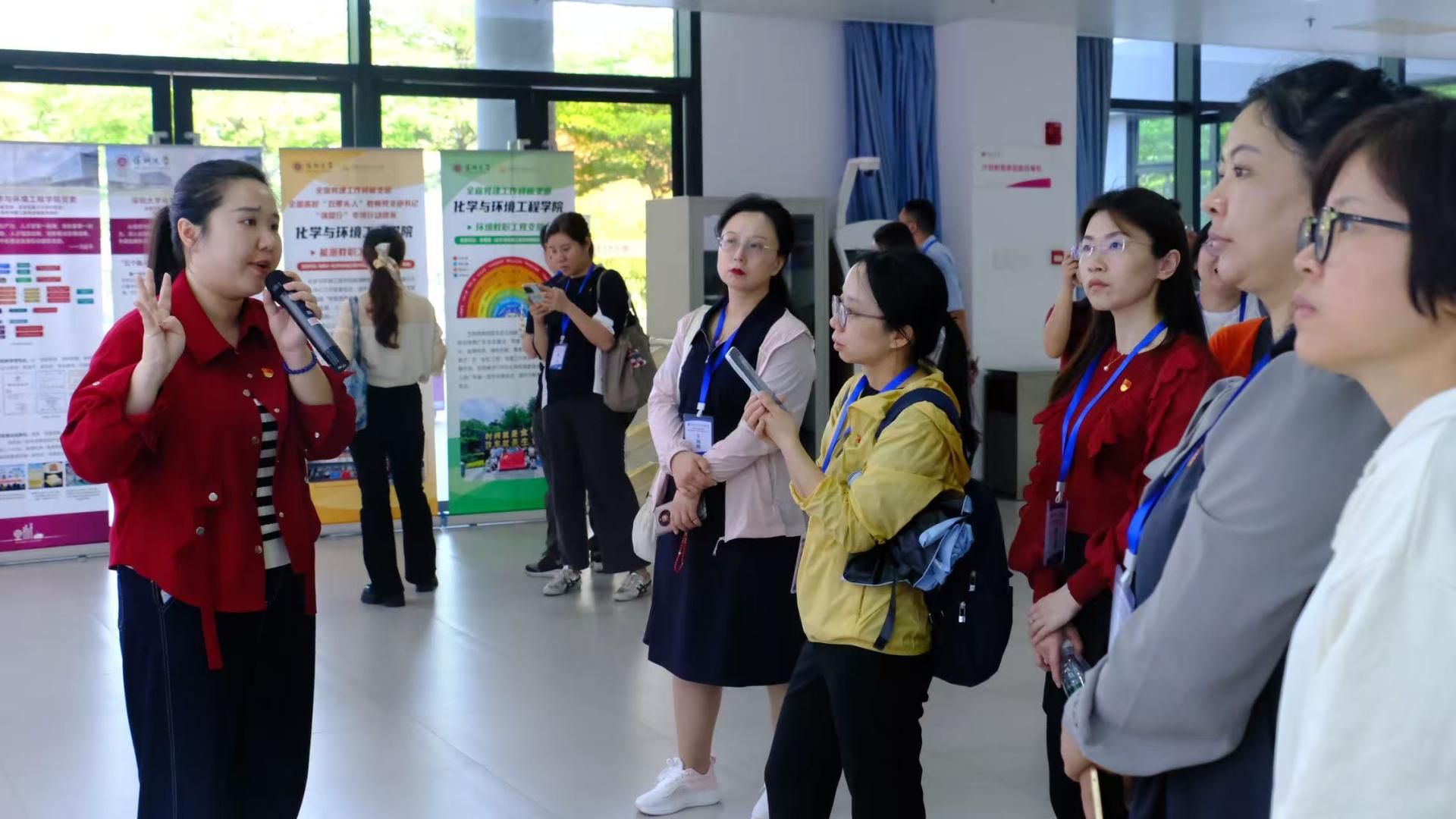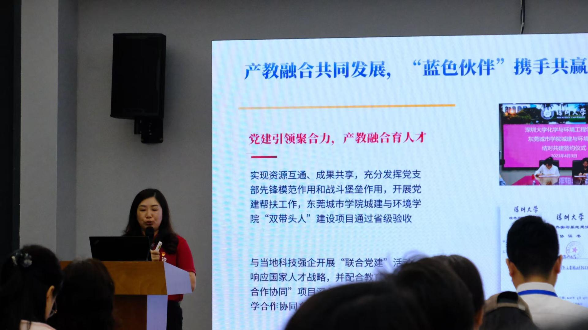 副院长、环境教工党支部书记李菊英分享了广东省党建工作样板支部的建设经验,着重介绍了“彩虹工程”党建工作体系,以“七色赋能”推动生态文明建设与立德树人同频共振的生动实践。