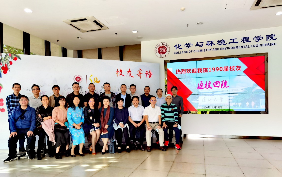1990届化学系校友毕业三十周年交流座谈会在B1-420会议室举行。校友代表后勤部主任王志忠、我院李翠华书记、任祥忠院长、何传新副院长等二十余人出席了会议,会议由李翠华书记主持。
