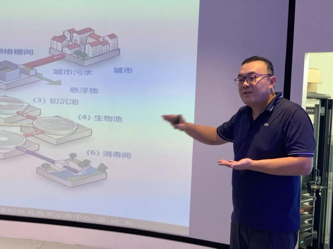 的环境工程虚拟仿真教学实验中心是广东省虚拟仿真教学示范中心,“30万吨城市污水典型处理工艺情景模拟仿真教学系统”直观、有效地使学生了解和观察污水处理厂的生产现场,通过3D模拟技术,以深圳市滨河城市污水处理厂为背景,将涉及到污水处理的厂房、设备、操作等信息通过系统进行表达,打造一个人机交互系统,使学生可以利用鼠标和键盘在系统中可以身临其境的观察和操作整个仿真工艺流程,将科学理论知识可视化呈现,可以激发出学生的学习热情,加深学生对于污水处理工艺的理解深度,提高学生工艺设计的积极性,发挥出独特的实验教学的实践作用。