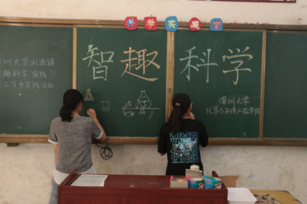 在活动正式开始的前一天,师生团队早早地抵达了浰源镇中心小学,为教室进行了精心的布置。希望为学生们营造一个舒适、温馨的学习环境,让他们在这里能够更好地感受到科学的乐趣。