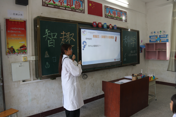 在支教的过程中,同学们发现乡村教育资源匮乏,孩子们腼腆害羞,第一次见到小老师有些生疏,课上不敢发言。团队成员们为了更好地融入到当地学生当中,积极在课前、课后组织小游戏,跟学生们积极互动,联络感情。为了给当地学生更好地学习体验,同学们克服重重困难,每天早起去学校准备实验器材,晚上修改教案到深夜,乐此不疲。