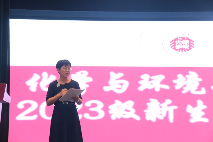 党委副书记徐晓玲老师主持,她热烈欢迎全体新生加入化院大家庭,并介绍了与会嘉宾。
