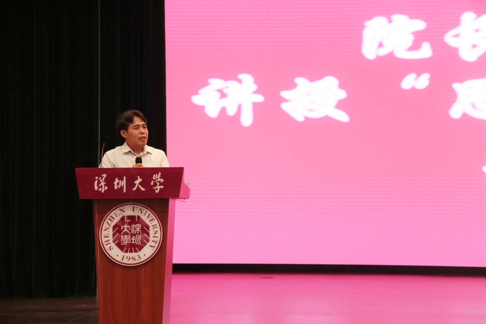 的总体情况,并表示在今年九月份深圳大学将迎来四十周年华诞,我们要继续发扬四十年来一脉相承的深大精神。他向同学们提出了几点建议:第一要志存高远,坚守理想信念。作为新时代中国青年,当胸怀大志、心系家国,以梦为马、砥砺前行,为实现中国梦增添强大青春能量。第二要脚踏实地,规划前行之路。建立阶段性的目标,从小事做起、从细节做起,方能抵达梦想的彼岸。第三要知行合一,厚植优良学风。他希望同学们时刻秉持“自立、自律、自强”的深大校训,砥砺爱国情怀、强化自律意识,为学不怠、求真务实,将科学家精神内化于心、外化于行,为优良的学风作风打下坚实基础,为建设世界科技强国注入强大的精神力量。