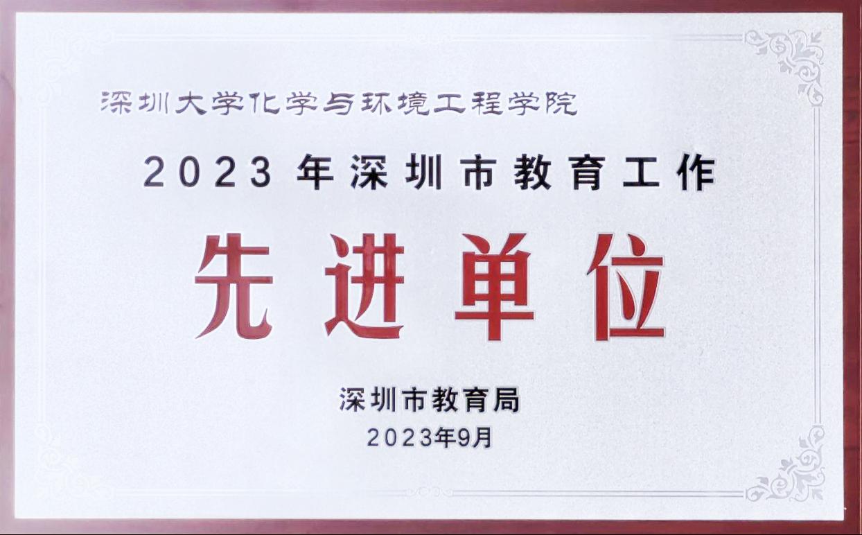 2023年申报成为“全省党建工作标杆院系”创建培育单位,第三教职工党支部2020年获全省党建工作样板支部立项,2023年顺利通过验收,第三教工支部获深圳市教育工委先进基层党组织,深圳市机关事业单位工会先进职工小家和深圳市巾帼文明岗。新增化学一级学科博士点,食品科学与工程一级硕士点和资源与环境工程2个专业硕士点;化学专业成为国家一流本科专业建设点,环境工程和新能源科学与工程专业成为广东省一流本科专业建设点,环境工程专业已通过工程教育专业认证。2023年11月,化学学科ESI排名进入前1.02‰,环境科学/生态学前3.20‰,2023年U.S.News化学学科排名国内第29名。我院将持续深化新时代教师队伍建设改革,建设一支高素质专业化创新型教师队伍,打造学科高峰,为深圳大学创建世界一流大学和新时代社会主义标杆大学贡献更大力量。