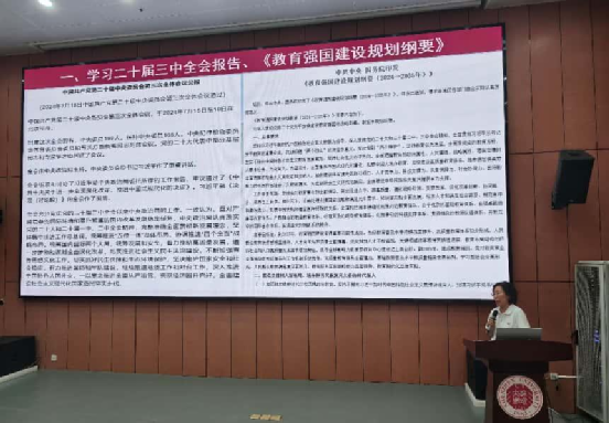 教师的责任与使命、安全与合规开展宣讲,结合党的二十届三中全会报告与《教育强国建设规划纲要》,强调深化中央八项规定精神落实,要求全体教师严守《新时代高校教师职业行为十项准则》及学校师德规范,强化意识形态、廉政合规和实验室安全意识,强化底线思维。