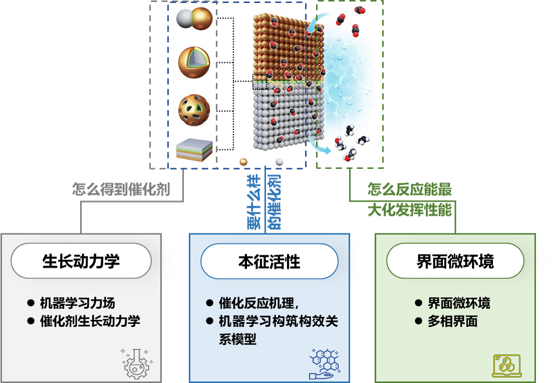 本课题组以高效筛选的电催化剂和理性设计电催化界面为目标,借助人工智能加速新能源材料的研发进程,是人工智能与能源化学学科交叉融合的方向。